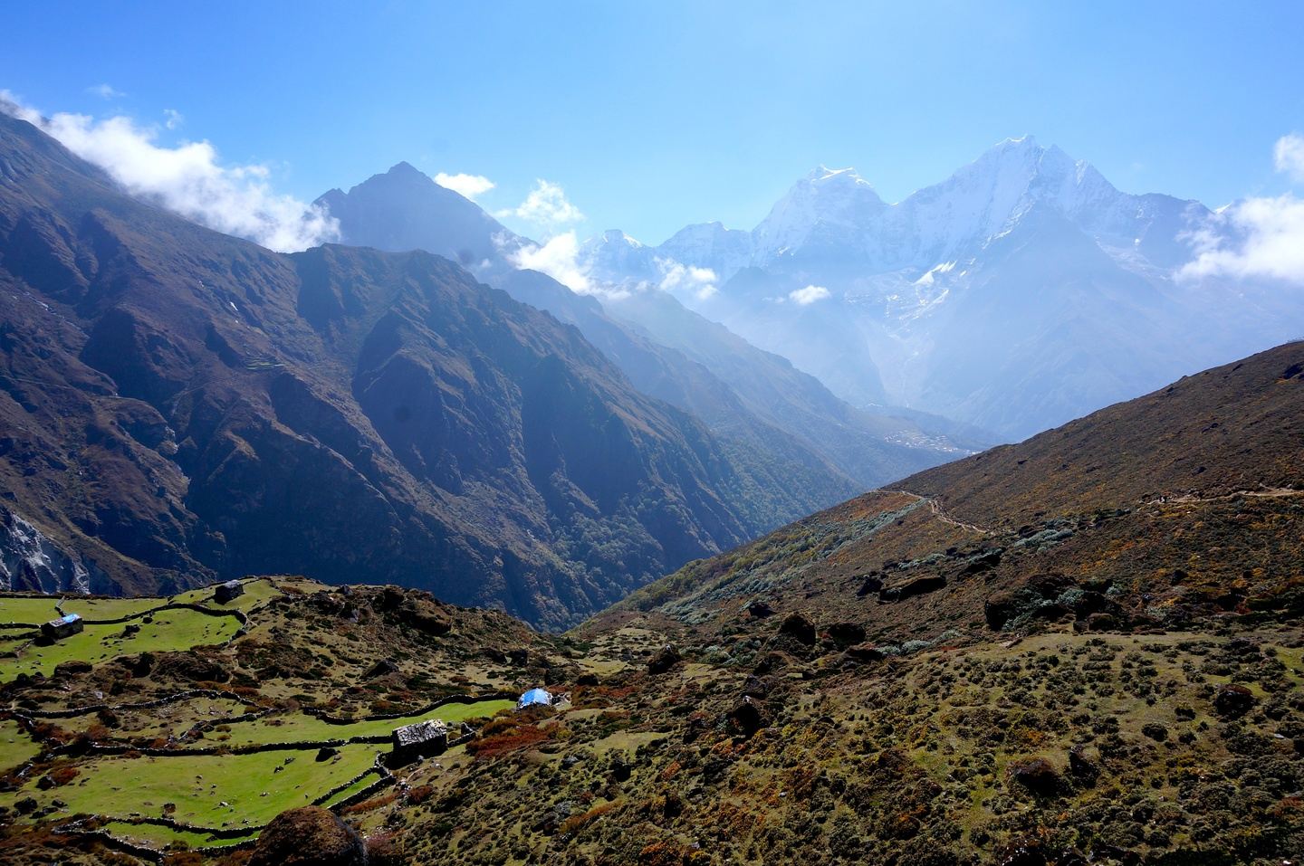 Our route of today to Tengboche weaves in and out of side valleys, making small ups and downs, to the teashops of Kenjoma, and joins the trail from Khumjung just before a collection of mani stones. The views of Everest and Ama Dablam are excellent from this part of the trek. We pass the small settlement of Sanasa from where the trail drops towards Phunki Thanga (3250m). From here the trail climbs steeply through forests and around mani stones as it follows the side of a hill to the saddle on which the monestary of Tengboche sits at 3870m. The view from here is rightly deemed to be one of the worlds most magnificent. Kwangde (6187m), Tawachee (6542m), Everest, Nuptse, Lhotse (8501m), Ama Dablam, Kantega and Thamserku provide an inspiring panorama of Himalayan giants. (4-5 hrs)Our route of today to Tengboche weaves in and out of side valleys, making small ups and downs, to the teashops of Kenjoma, and joins the trail from Khumjung just before a collection of mani stones. The views of Everest and Ama Dablam are excellent from this part of the trek. We pass the small settlement of Sanasa from where the trail drops towards Phunki Thanga (3250m). From here the trail climbs steeply through forests and around mani stones as it follows the side of a hill to the saddle on which the monestary of Tengboche sits at 3870m. The view from here is rightly deemed to be one of the worlds most magnificent. Kwangde (6187m), Tawachee (6542m), Everest, Nuptse, Lhotse (8501m), Ama Dablan, Kantega and Thamserku provide an inspiring panorama of Himalayan giants. From Tengboche we end our day by descending for about 30 minutes through forests of birches, conifers and rhododendrons to the village of Deboche where we will spend the night at an idyllic Sherpa lodge . (5 hrs).